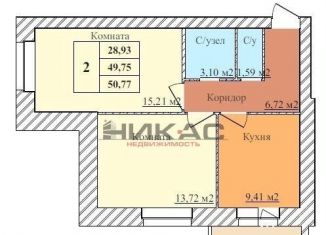 Двухкомнатная квартира на продажу, 50.8 м2