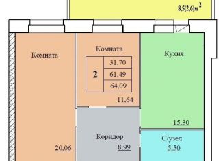 Продажа 2-комнатной квартиры, 64.6 м2
