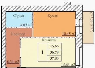 Продается однокомнатная квартира, 37.8 м2