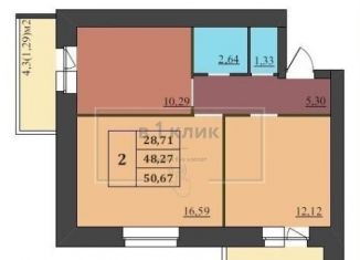 Двухкомнатная квартира на продажу, 50.7 м2