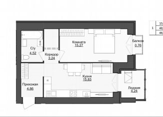 Продажа однокомнатной квартиры, 46.1 м2, Мельничная улица, 85