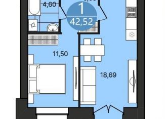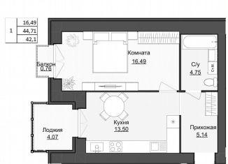 Продажа однокомнатной квартиры, 42.9 м2