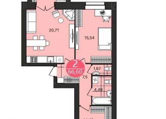 Двухкомнатная квартира на продажу, 66.6 м2, Кавказская улица, 13