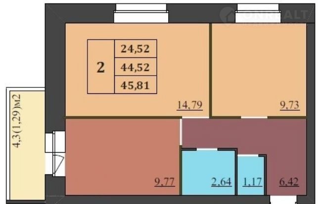 Общая площадь 45.8 м2
