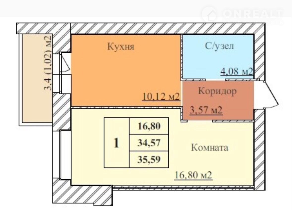 Общая площадь 35.6 м2