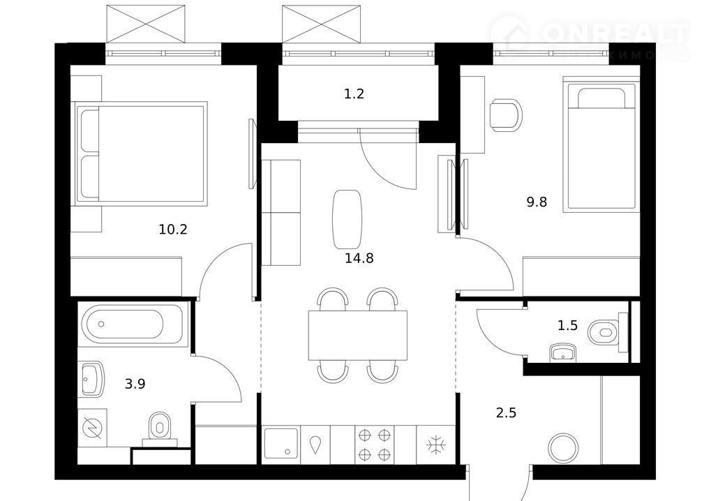 Общая площадь 48.9 м2
