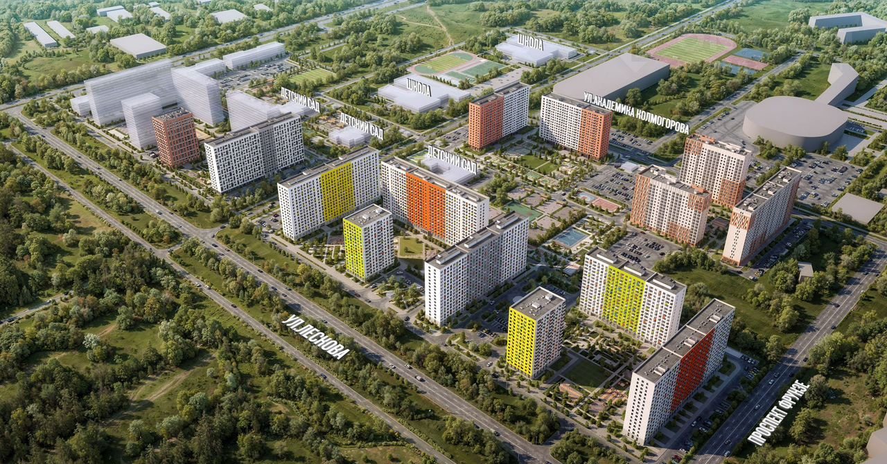 В проекте предусмотрено 18 жилых корпусов, две школы и 3 детских сада. Квартиры – с нейтральной отделкой; подъезды – с высокими потолками, панорамными окнами и двумя входами на уровне земли без ступеней и пандусов.