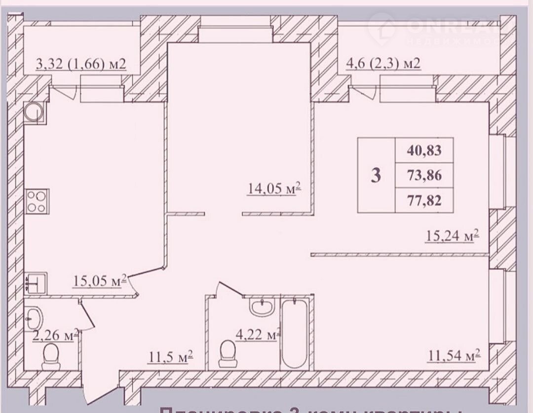 Общая площадь 77.8 м2