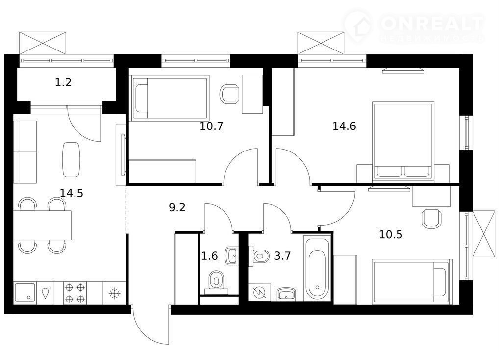Общая площадь 66 м2