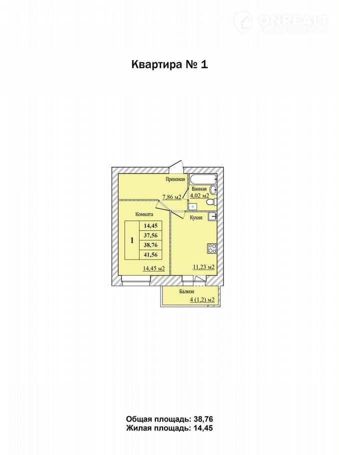 Общая площадь 38.8 м2