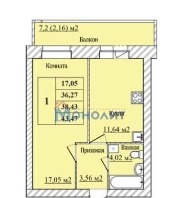 Балкон, лоджия 1 лоджия