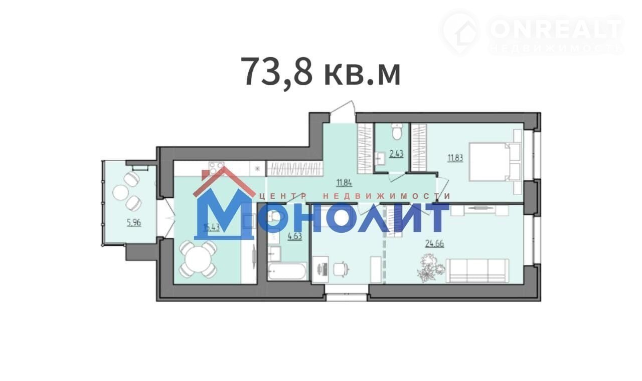 Общая площадь 73.8 м2