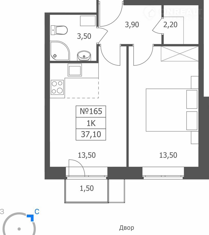 Общая площадь 37.1 м2