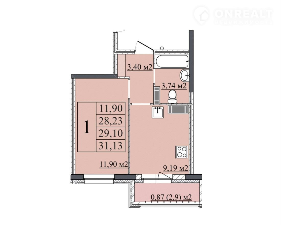 Общая площадь 29.1 м2