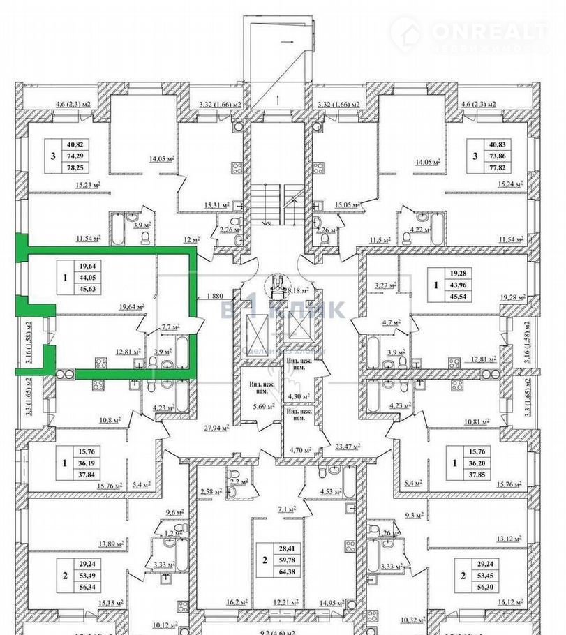 Общая площадь 45.6 м2
