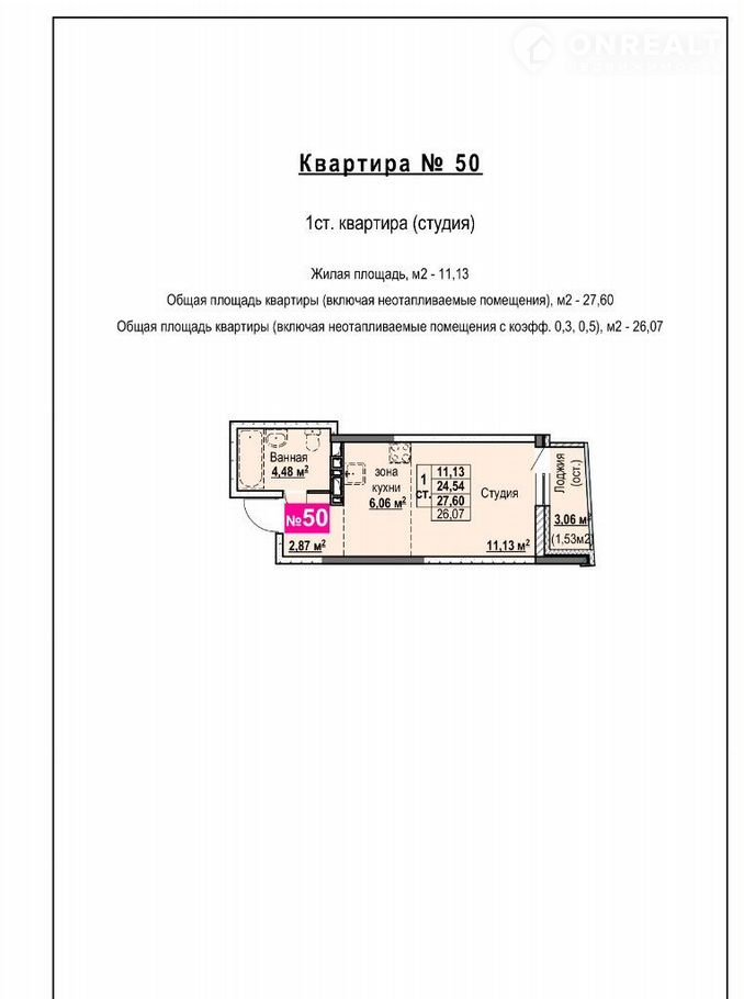 Общая площадь 26.1 м2