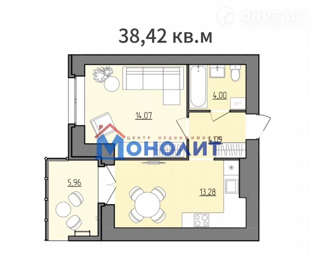 Общая площадь 38.4 м2