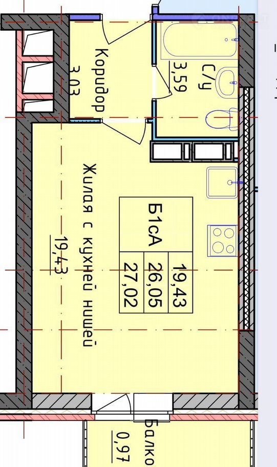 Общая площадь 26.9 м2