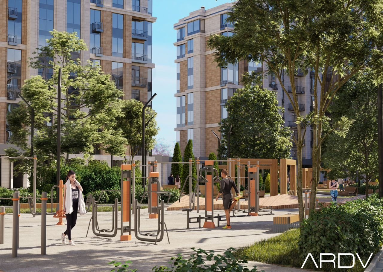 - Всё необходимое для комфортной жизни в шаговой доступности: магазины, кафе, аптеки, фитнес-центры, парки, школы и детские сады;