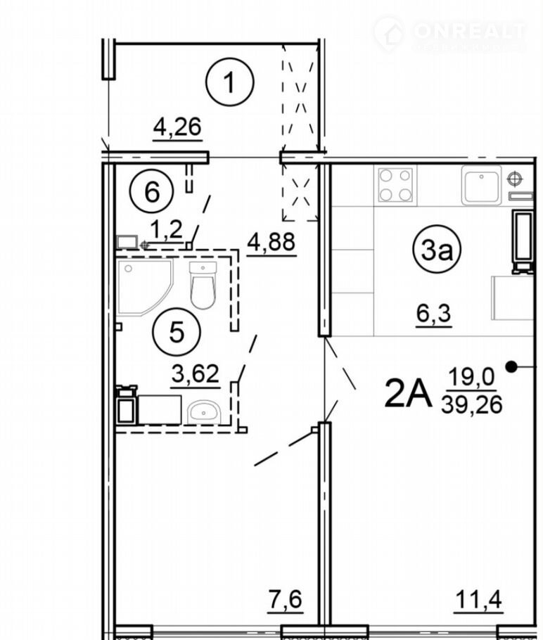 Общая площадь 39.2 м2