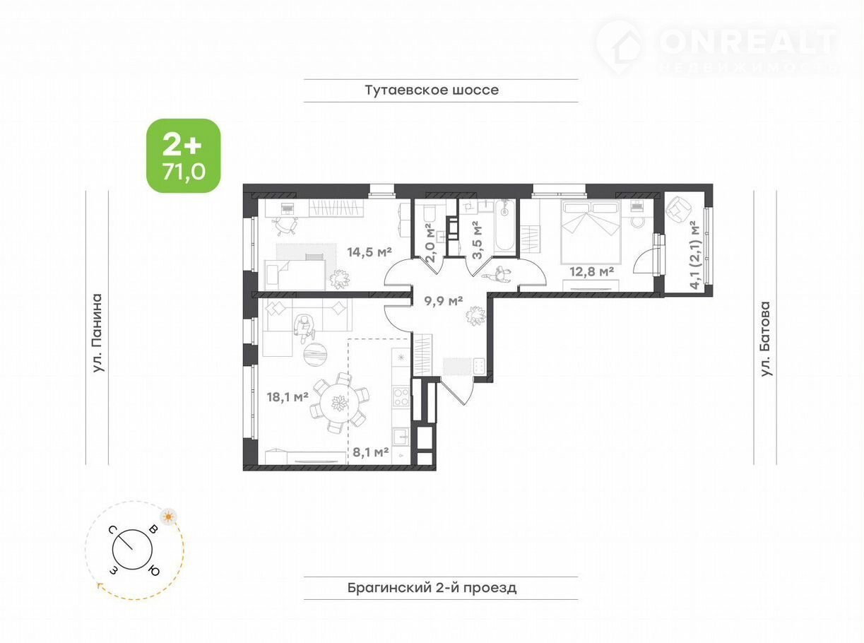 Общая площадь 71 м2
