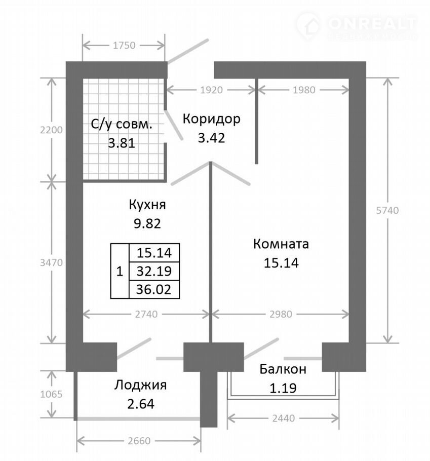 Общая площадь 36 м2