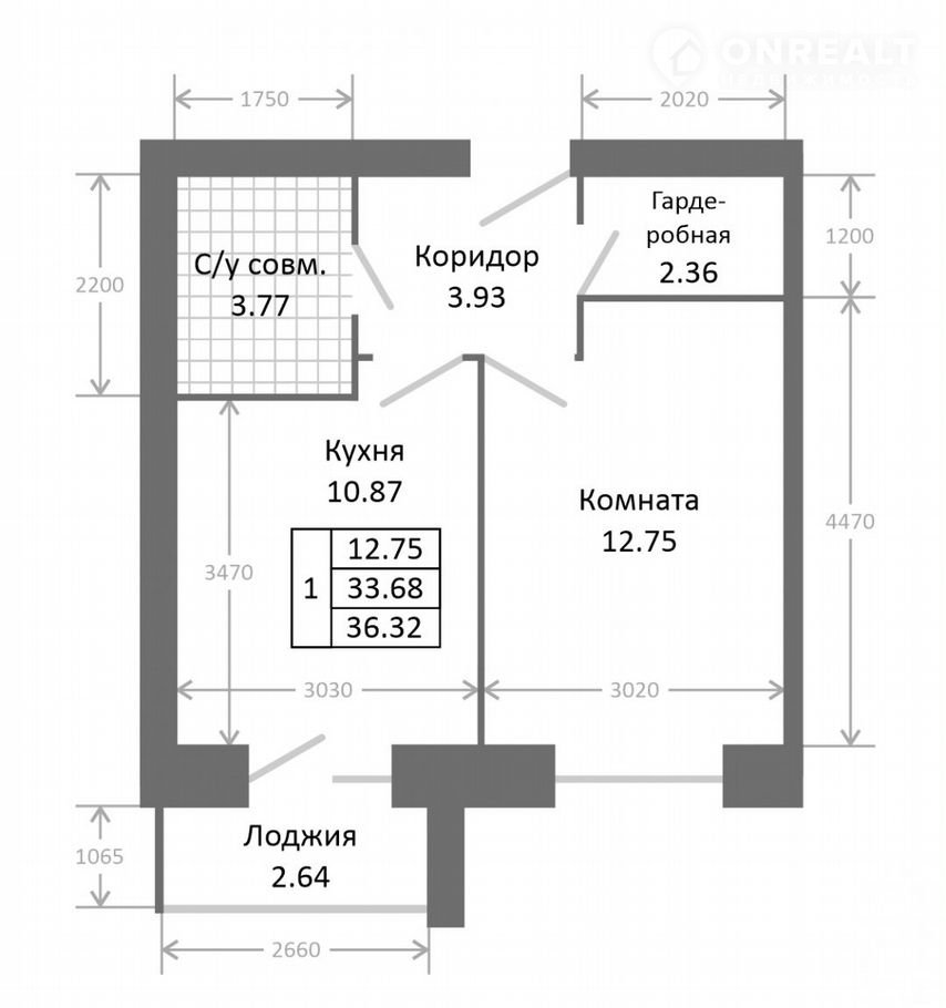 Общая площадь 36.3 м2