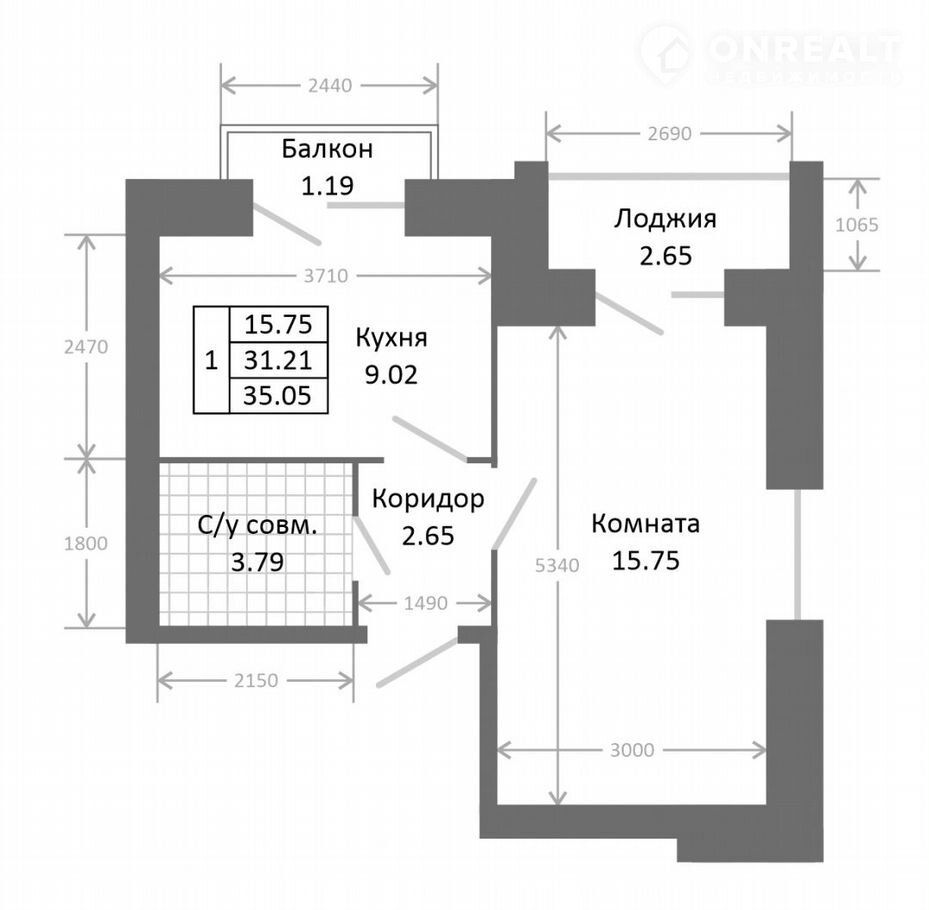 Общая площадь 35.1 м2