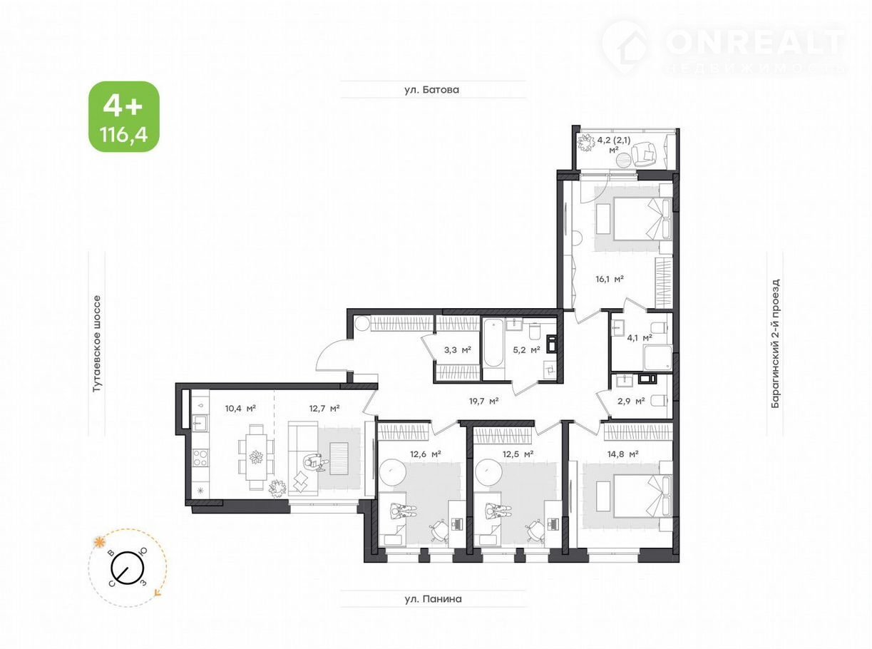 Бoльшaя и функционaльнaя куxня-гостинaя с вoзмoжнoстью зониpoвaния, спальня с индивидуальным санузлом, три светлые и уютные комнаты, совмещённый и раздельный санузлы, вместительная прихожая с нишей под шкаф-купе и гардеробная. Каждая комната оснащена местами для организации хранения.