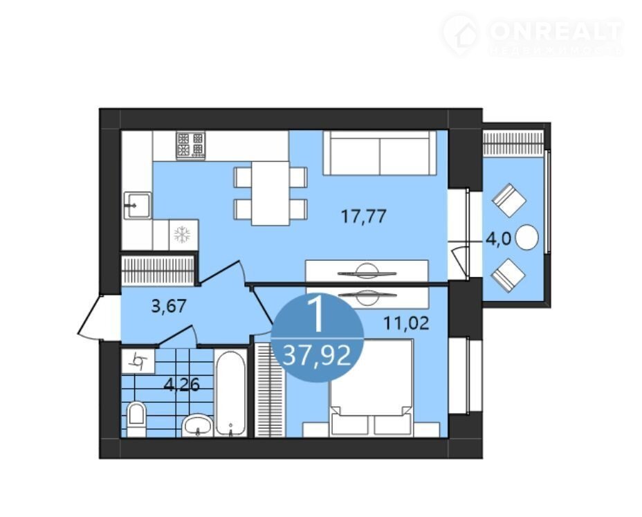 Общая площадь 37.9 м2