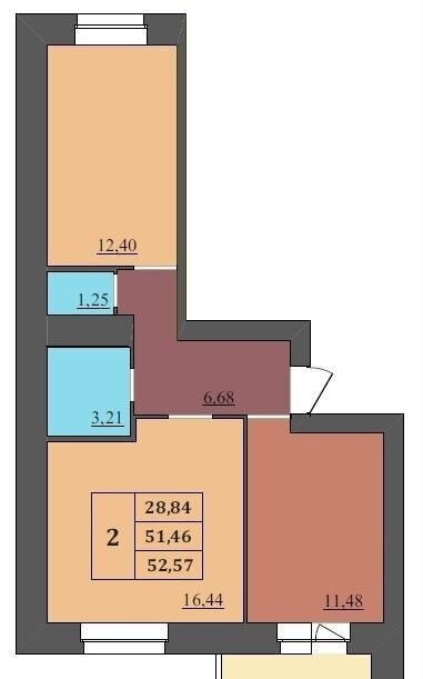 Общая площадь 52.6 м2