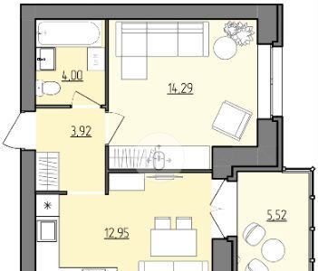 Жилая площадь 14.3 м2