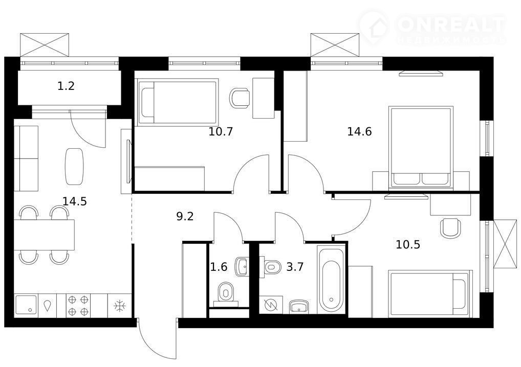 Общая площадь 66 м2
