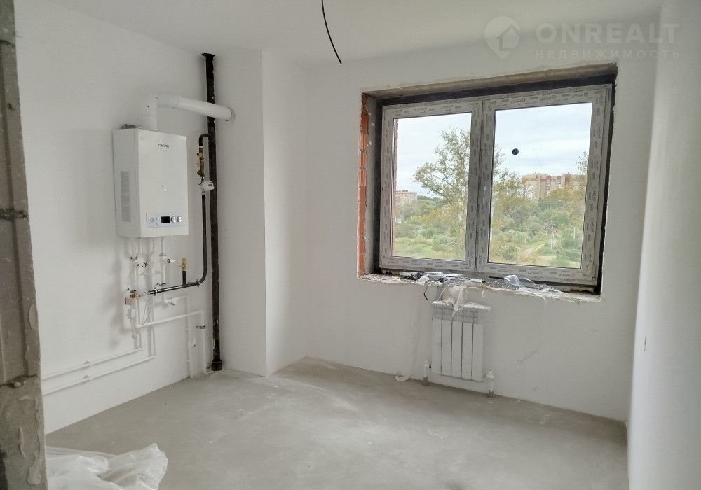 стены выровнены, стяжка на полу, разводка под сантехнику, газовая плита, входная железная дверь, газовый котел, газовая плита и остекление лоджий.