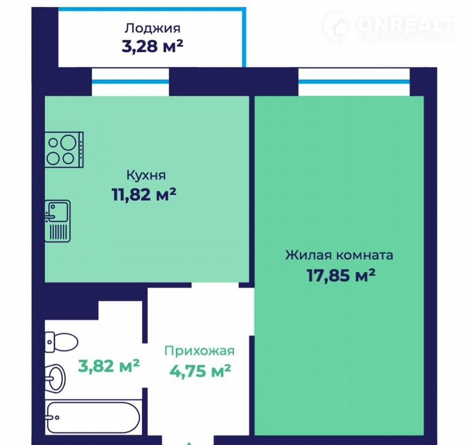 Общая площадь 39.9 м2