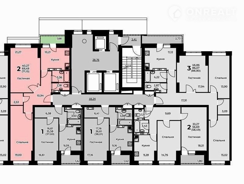 — В подъезде три лифта (1 пассажирский и 2 грузовых)