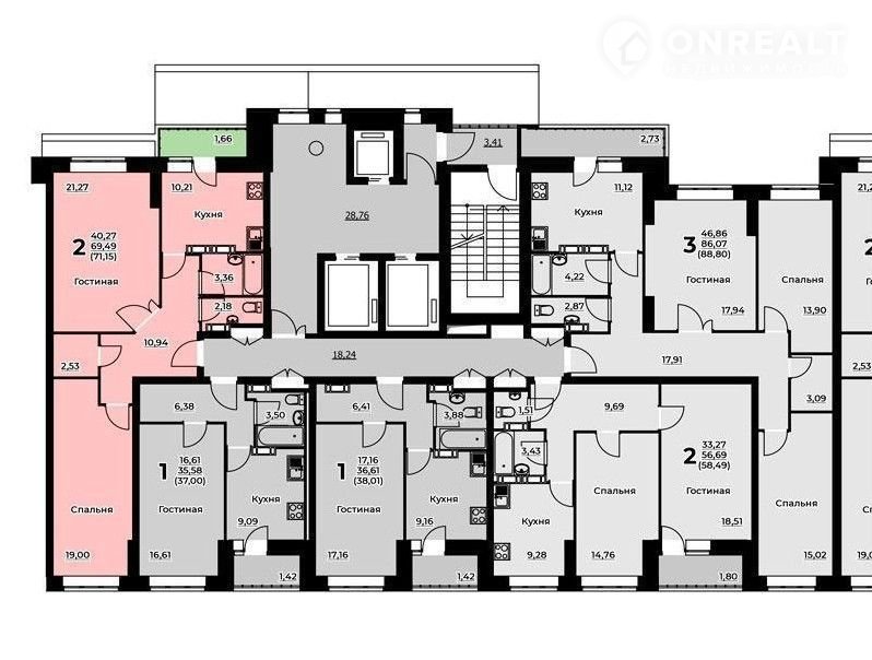 — В подъезде 3 лифта (пассажирский и 2 грузовых)