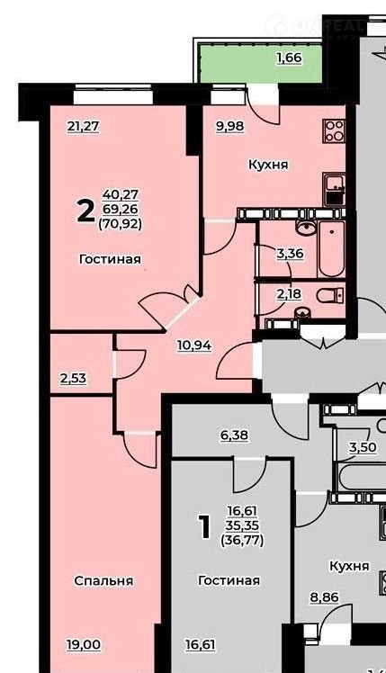 Балкон, лоджия 1 лоджия