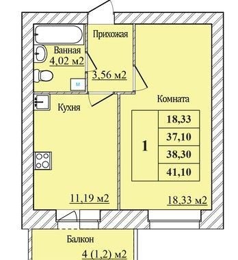 Общая площадь 38.3 м2