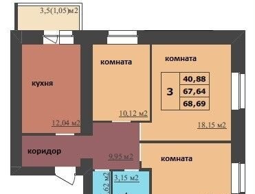 Общая площадь 68.7 м2