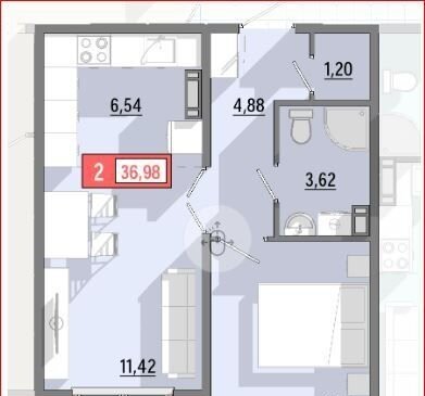 Общая площадь 36.8 м2