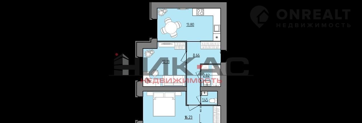 Общая площадь 55.1 м2