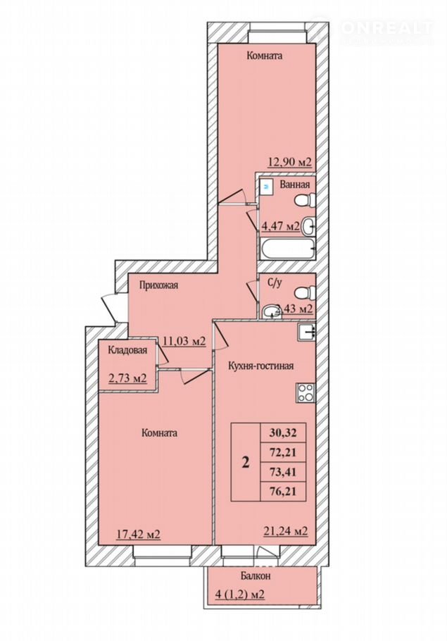 Общая площадь 73.4 м2