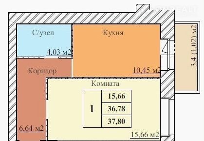Общая площадь 37.8 м2