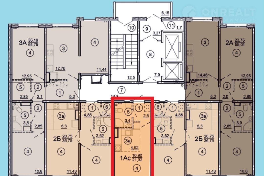 Общая площадь 21.3 м2