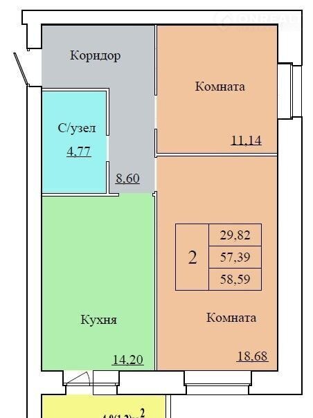 Общая площадь 58.6 м2