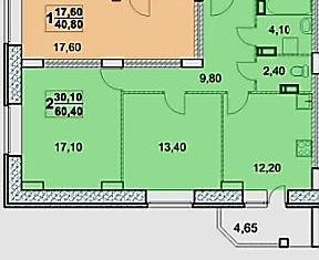 Общая площадь: 69.6 м2