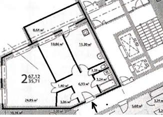 Продается двухкомнатная квартира, 67.12 м2, Лётная улица, 10