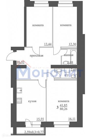 Общая площадь 80.3 м2