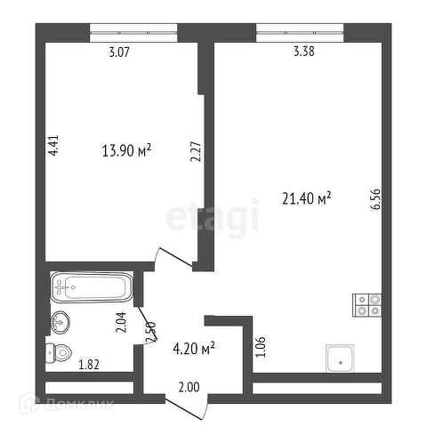 Общая площадь 43.1 м2